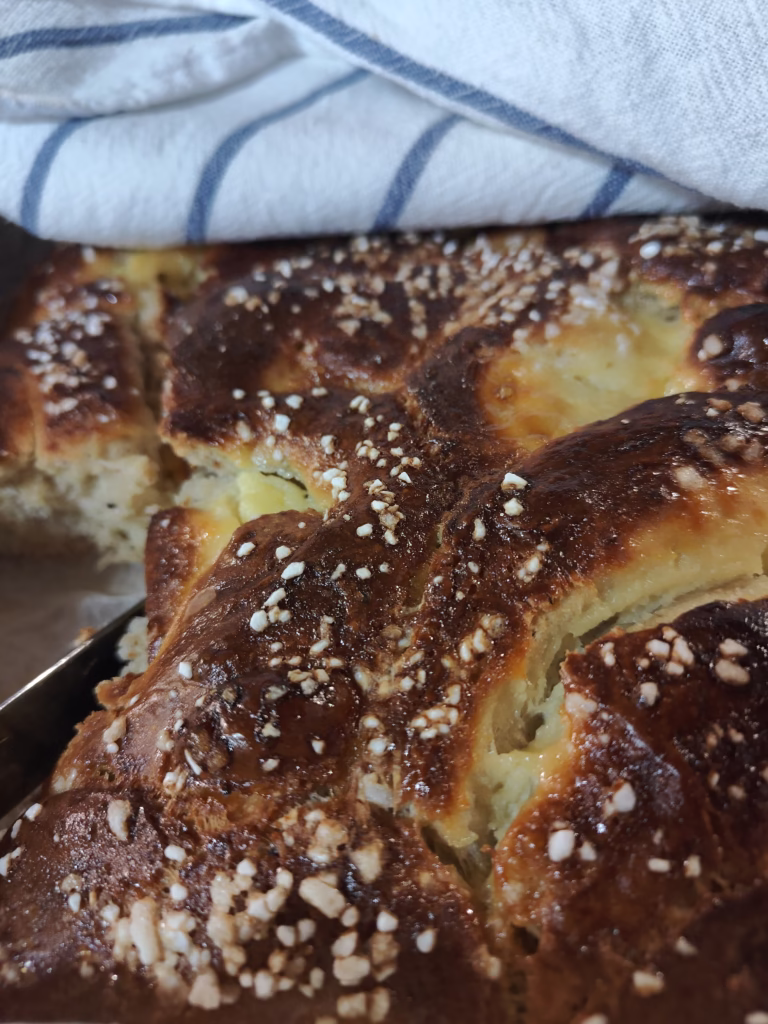 Viimeksi leipoessani pullaa kokeilin löytämääni ohjetta, jossa oli käytetty valmista sitruunarahkaa täytteenä. Tuo valmistettiin niin, että kaulitsin taikinan levyksi ja levitin päälle sitruunarahkan. Sen jälkeen rullasin levyn ja leikkasin rullasta pätkiä, jotka ladoin leivinpaperilla paperoituun irtopohjavuokaan. Paistoin pullan kypsäksi ja olin oikein tyytyväinen makuun. Ulkonäkö ei sallinut tämän kummempaa kuvaa esitellä 😂