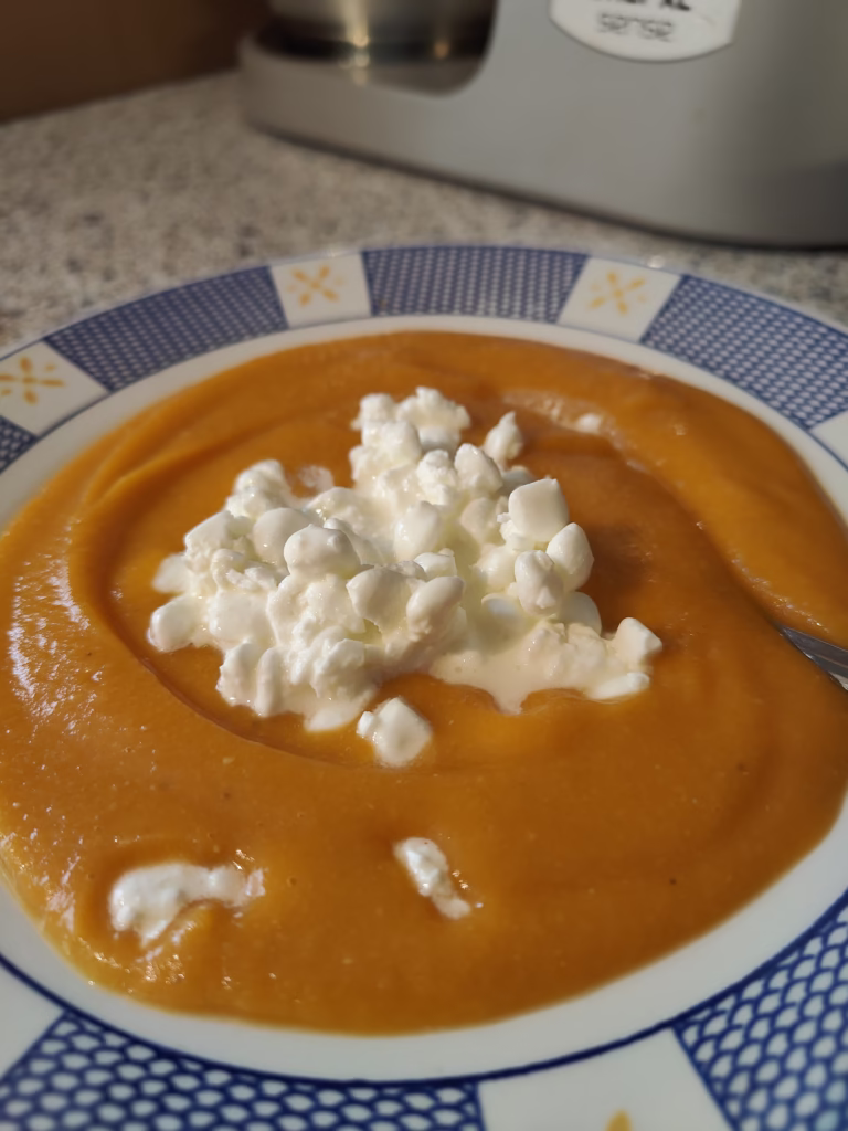 Kasvisosekeittoon voi käyttää kaikkia nahistuneitakin kasviksia. Nyt minulla oli nämä porkkanat ostettu ihan tätä ruokaa varten. Keitän kasvikset lähes kypsiksi ja lisään sitten huuhdellut linssit joukkoon ja keitän 10-15 minuuttia, kunnes linssit ovat kypsät. Soseutan keiton sauvasekoittimella ja lisään joukkoon vielä purkillisen kaurakermaa sekä mausteita sopivalta maistuvan määrän. Keittooni lisään lautaselle vielä päälle raejuustoa.