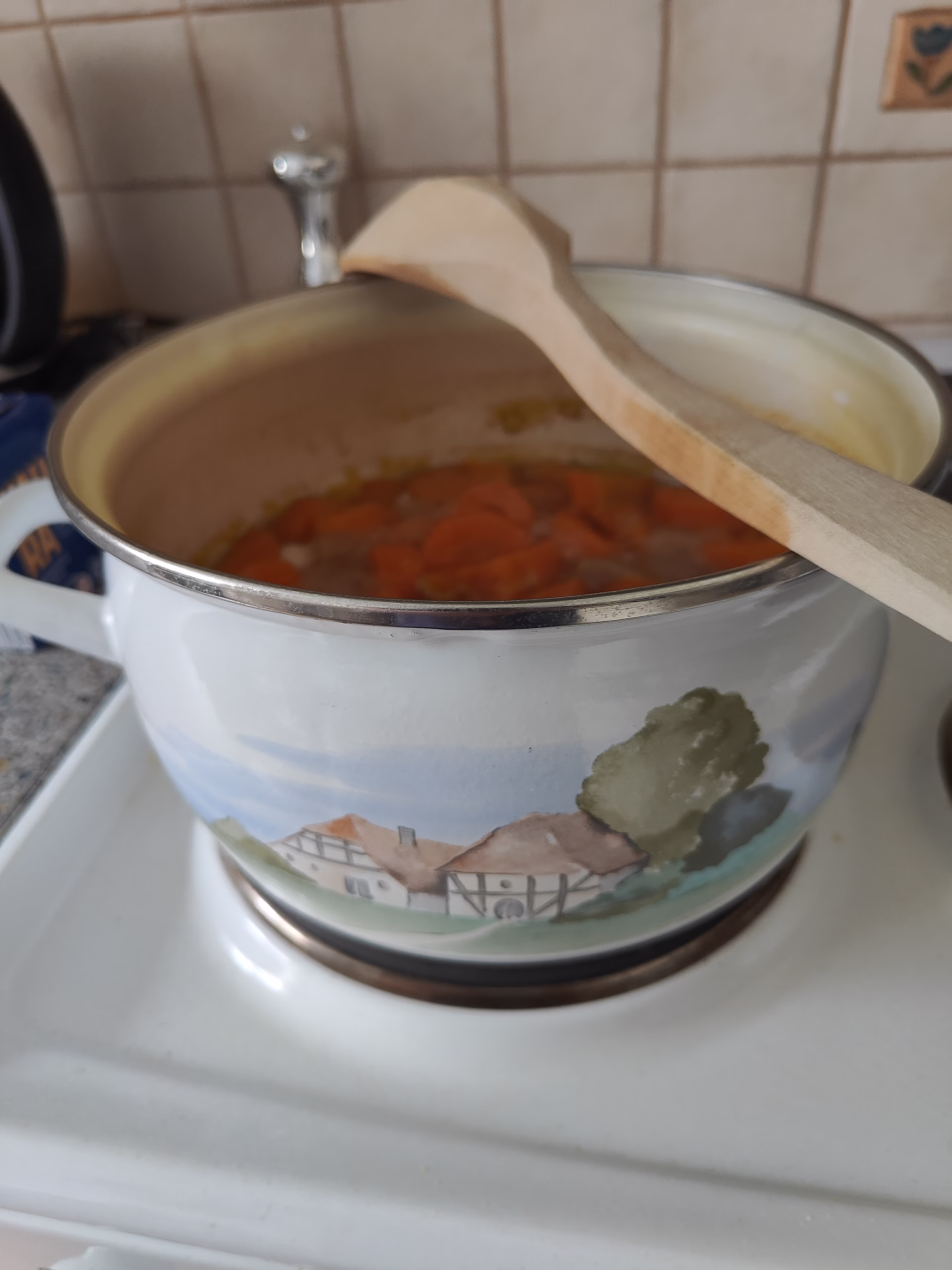 Kasvisosekeittoon voi käyttää kaikkia nahistuneitakin kasviksia. Nyt minulla oli nämä porkkanat ostettu ihan tätä ruokaa varten. Keitän kasvikset lähes kypsiksi ja lisään sitten huuhdellut linssit joukkoon ja keitän 10-15 minuuttia, kunnes linssit ovat kypsät. Soseutan keiton sauvasekoittimella ja lisään joukkoon vielä purkillisen kaurakermaa sekä mausteita sopivalta maistuvan määrän. Keittooni lisään lautaselle vielä päälle raejuustoa.